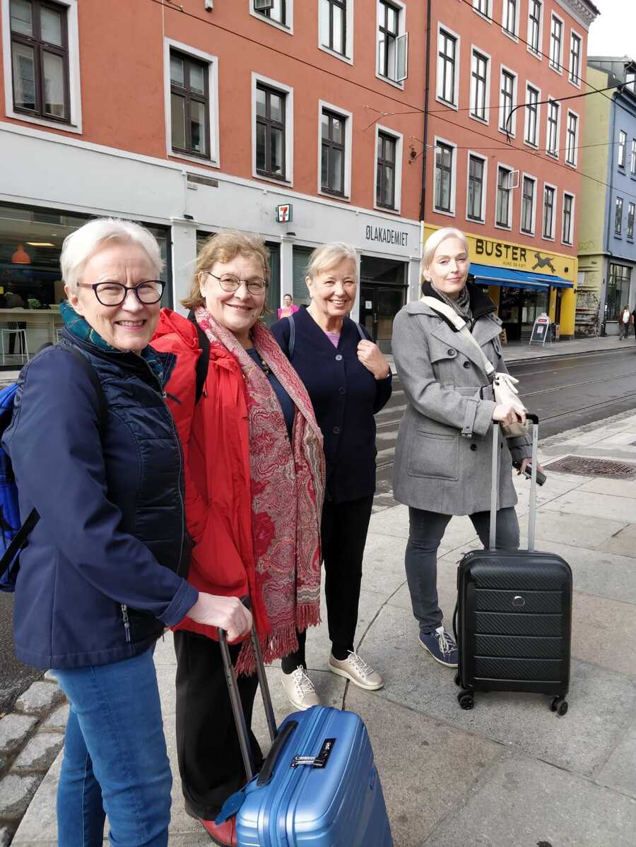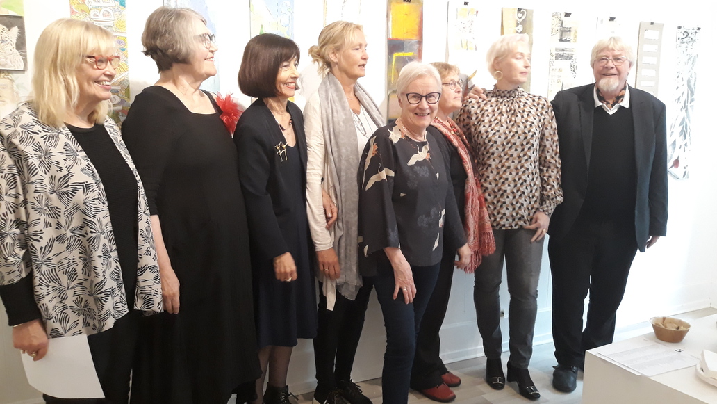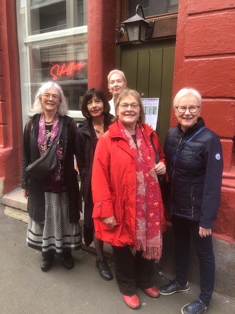 from left, Katri, Simone, Irene, Pirjo D. Pirjo Heino, Pirjo P, Karmela, Yana Gal, ambassador in Oslo for Israel, and Hans.